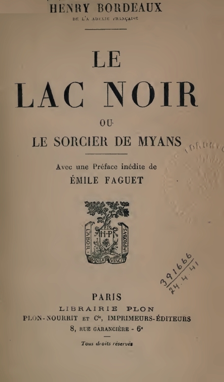 Avec une préface inédite de Émile Faguet. Henry Bordeaux, 1904.