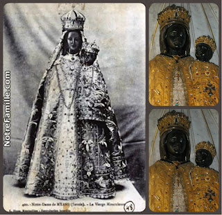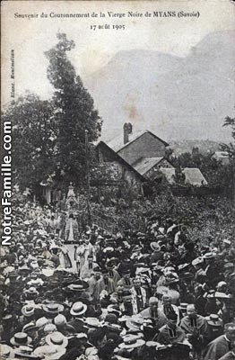 17 août 1905, vingt mille pèlerins assistent au couronnement de la Vierge Noire en présence du cardinal archevêque de Lyon entouré de cinq évêques et de cinq cent prêtres. La Vierge et l’enfant ont été ceints de couronnes de vermeille au nom du Pape Pie X.Blog officiel du sanctuaire de Notre de Myans : sanctuaire-myans.dioceses-savoie.org/